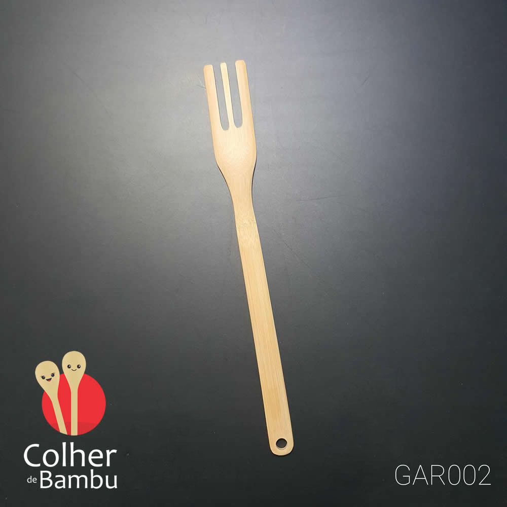 Garfo de bambu sem ponta com 3 dentes. Ideal para servir macarrão espaguete e soltar o arroz depois de pronto.